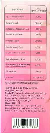 - Sığır kolajeni içeren bu sıvı form, cildinizin doğal yapısını destekleyerek daha sıkı ve elastik bir görünüm kazandırır.; - Hyaluronik asit ile zenginleştirilmiş formülü sayesinde derinlemesine nemlendirme sağlar ve cilt bariyerini güçlendirir.; - Aromasız yapısıyla her türlü diyet rutinine kolayca uyum sağlar; lezzetli yiyeceklerle tüketebilirsiniz.; - Paket içerisinde bulunan 10 adet şişe, uzun süreli kullanım için idealdir ve pratik bir şekilde düzenli olarak alınabilir.; - Ürünün menşei Çin'dir ancak kalite standartlarına uygunluğu Türkiye'deki yetkili temsilcimiz tarafından kontrol edilmektedir.; - Kolajen içeriğiyle cilt gençleştirme hedeflerinize katkıda bulunurken, hyaluronik asit desteğiyle de dolgunluk ve parlaklık sunar.; - 250 ila 499 gram arasında değişen ağırlığıyla taşıması kolaydır ve seyahatlerde rahatça yanınızda götürebilirsiniz.; - Tiens İç ve Dış Ticaret Ltd.; Şti.; tarafından ithal edilen bu ürün, güvenilir bir tedarik zinciri sunar.; - Paketin ön yüzünde yer alan görsel, ürünün estetik tasarımını yansıtırken arka yüzündeki görsel ise detaylı bilgi içerir.; - Gıda işletme kayıt numarasıyla sağlık otoritelerinin izni altında üretilmiştir; güvenle tüketebilirsiniz.; - Tip 1 kolajen içeriği sayesinde cilt elastikiyetini artırarak yaşlanma belirtilerine karşı koruma sağlar.; - Üreticisi Wuhan Senlan Biotech ile kalite güvencesi altındadır; üretim süreçleri uluslararası standartlara uygundur.; - Set içinde tek bir paket bulunur; böylece ihtiyaca göre ayarlamalar yapabilir veya farklı zamanlarda kullanabilirsiniz.; - Enerji ve besin değerlerine dair bilgilere erişebileceğiniz görsel, sağlıklı yaşam tarzına yönelik öneriler sunar.; - Kullanım talimatlarına dikkat edilmesi gerekmekte olup, çocuklar için uygun saklama koşulları vurgulanmaktadır.; - Hamilelik, emzirme dönemi ve hastalık durumlarında doktorunuza danışmadan ürünü kullanmamanız önemlidir.; - Takviye edici gıdalar normal beslenmenin yerine geçmemeli; dengeli diyet alışkanlıklarınıza devam etmenizi tavsiye ediyoruz.